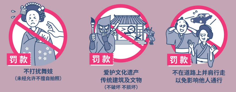 - 请勿触碰、追逐、擅自拍摄艺妓和舞妓。