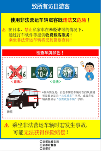 为了您的旅途安全,请选择绿色车牌的正规出租车或正规打车应用程序。祝您在京都旅行安全且愉快。