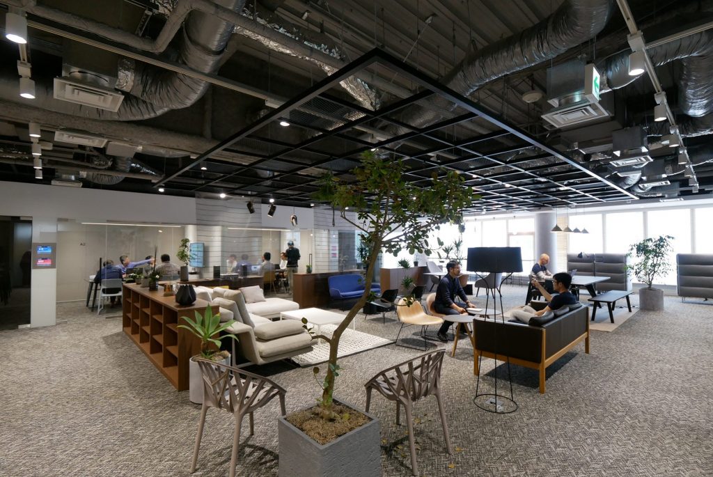沙发和桌子舒适地摆放在中心,随意放置的会议和个人工作隔间以及各种观叶植物使HUB成为一个舒适通风的空间。