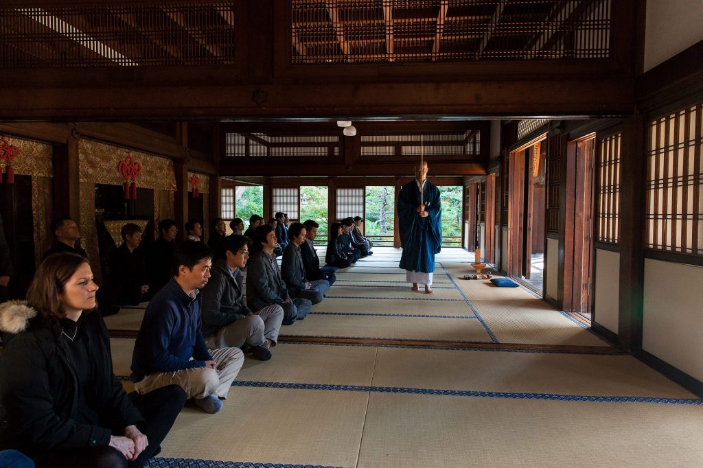 产品设计师和传统工艺师能否很好地理解彼此?毫无疑问,他们对此感到不确定。或许正因如此,他们决定从两足院的禅修开始。在宁静的殿堂里一起冥想,去公共澡堂泡澡,并在同一张桌子上用餐。从此,他们的关系自然而然地建立起来了。(图片由松下京都设计公司提供)