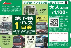 Subway & Bus 1-Day Pass cards can be purchased at Kyoto Tourist Information Center “Kyo Navi”, City Bus and Subway information centers, commuter pass sales offices and City Bus sales offices.