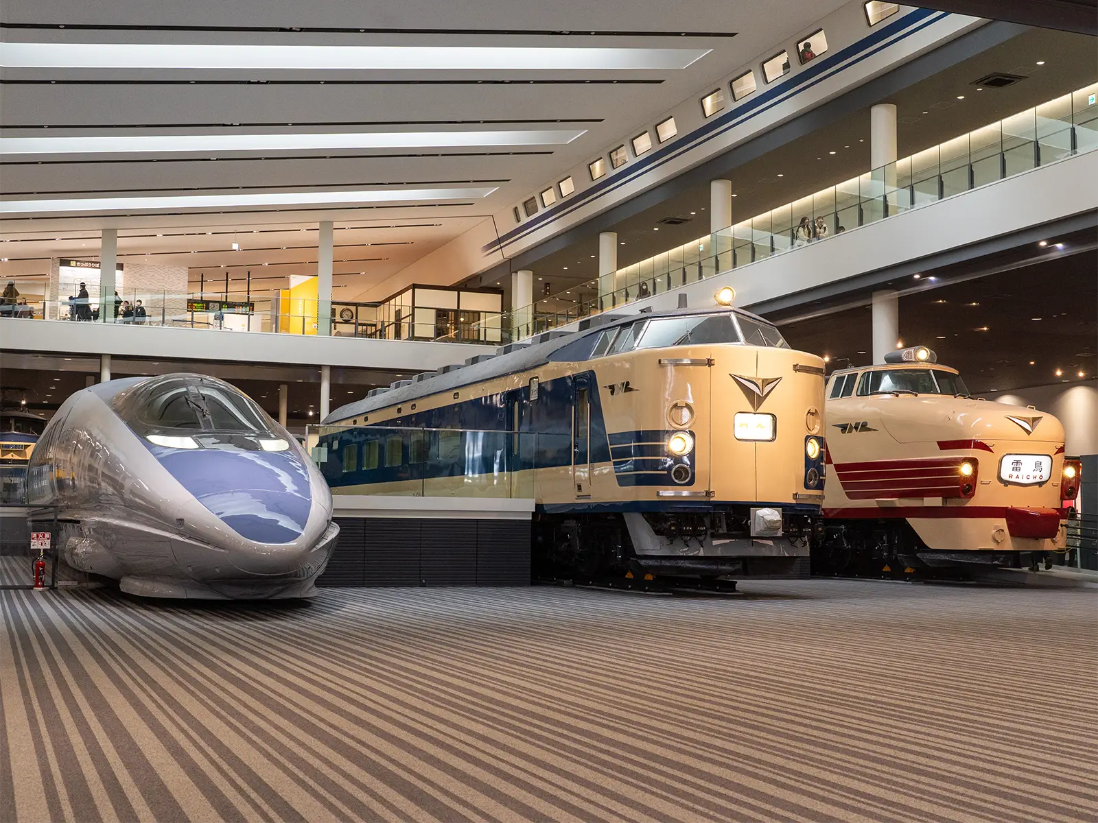 Twelve train cars are on display on the first floor of the spacious main building, making a truly impressive sight. There are also displays of a railway crossing and a train driver’s cab, as well as an area where visitors can learn how trains work.