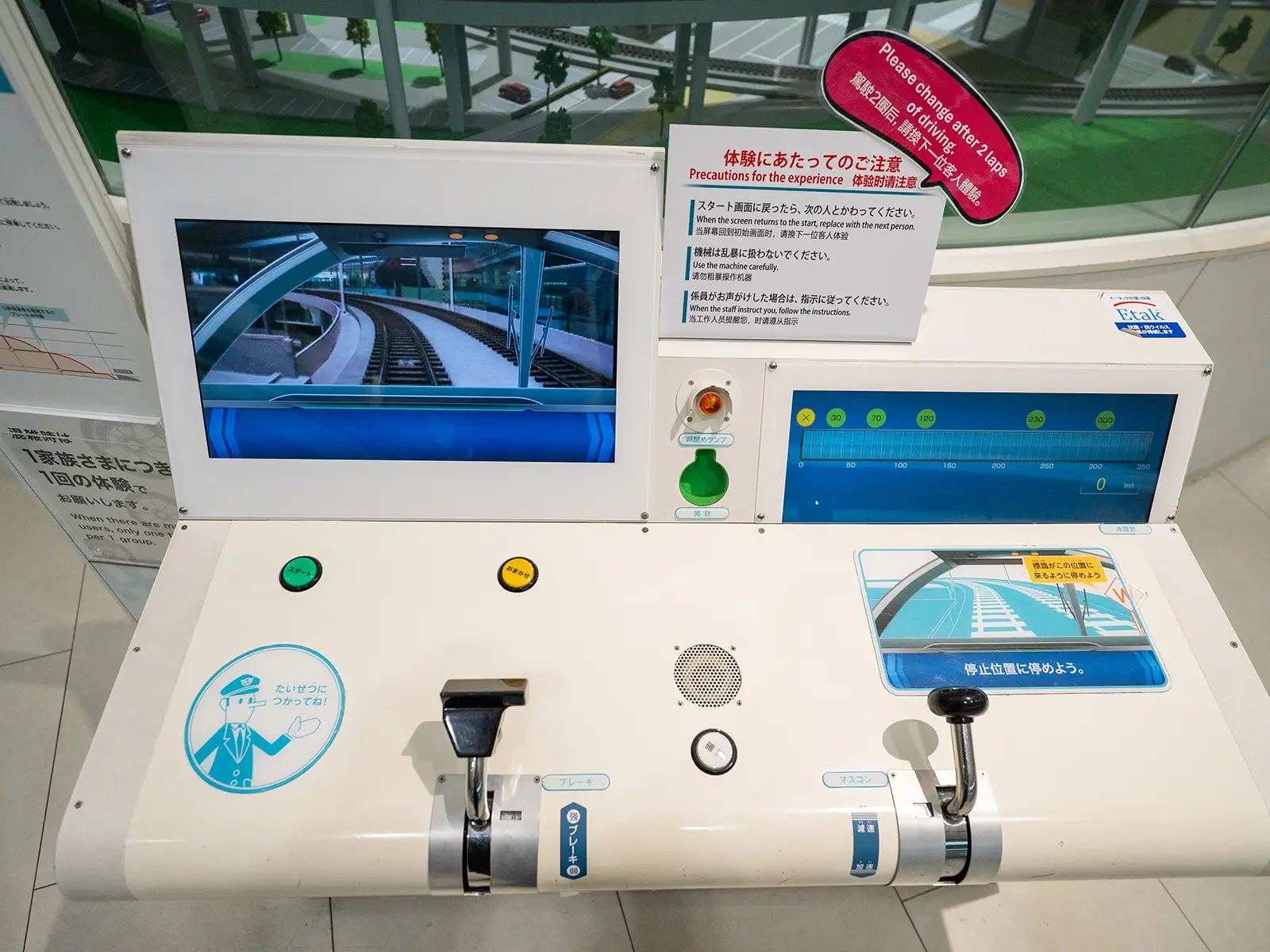 One of the most popular experiences at the museum is the driving simulator, located on the same floor as the diorama. Visitors can experience operating a train in a simulator based on the actual machines used for driver training.