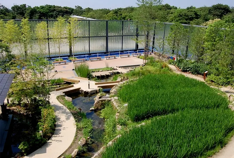 Step outside the aquarium building and you’ll find the “Kyoto Satoyama” area, which recreates a traditional Kyoto rural landscape. In winter you will find fruit and vegetables growing in the field, and in summer, a lush rice paddy along with the flora and fauna that gather there. Here in this place, where the scenery changes with the seasons, you can experience the gentle charm of the Kyoto countryside.