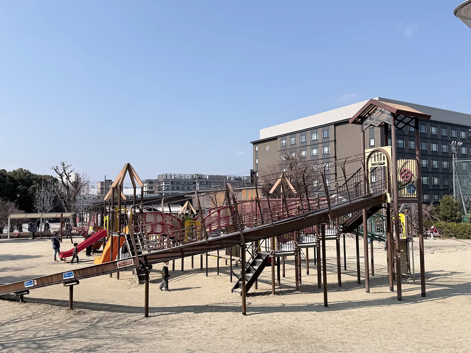 Between the Kyoto Railway Museum and the Kyoto Aquarium there is a vast lawn where you can relax at your leisure. You can enjoy a picnic, play on the playground equipment, or, in February, take in the sight of plum blossoms in full bloom.