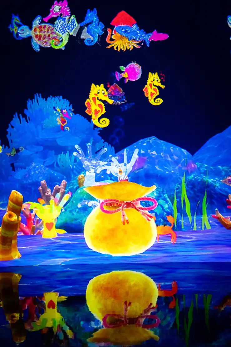 Kurage Wonder features the “GURURI” 360-degree panoramic tank that envelops the visitor in a dreamlike world, an immersive experience that feels like drifting through the ocean. However, the real discovery here lies beyond its beauty.