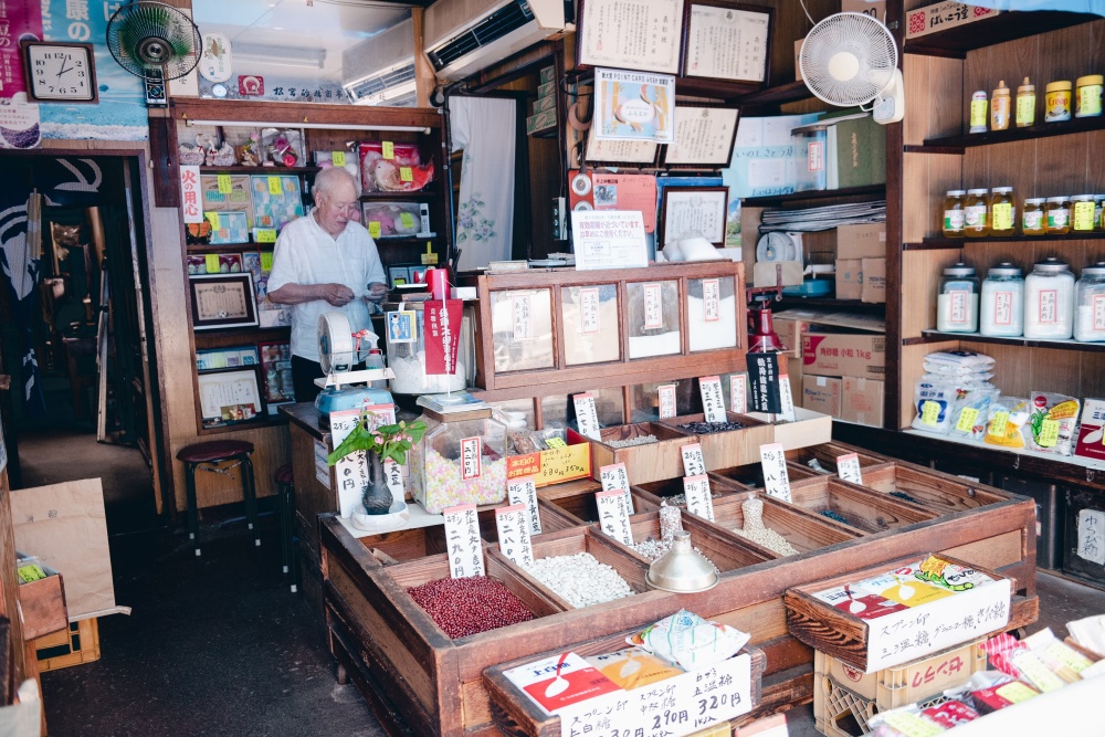 Una tienda de azúcar y frijoles en la calle comercial. Esta antigua tienda familiar sigue prosperando hoy en día.