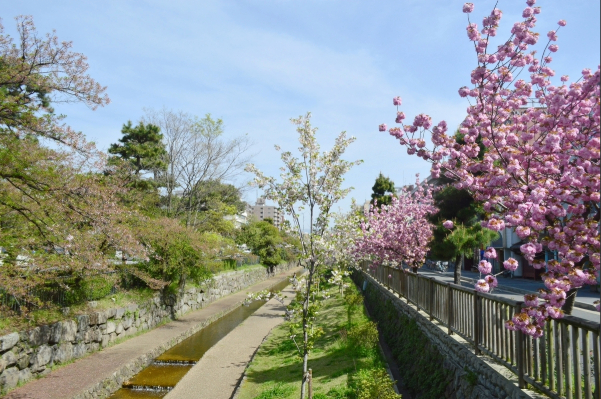 Named after philosopher Nishida Kitaro (1870-1945), who often walked here in contemplation, the path is lined with a variety flowers and wildlife. Some riverside paths reuse stones from old streetcar tracks, but pedestrian traffic can be heavy—use side roads where possible.