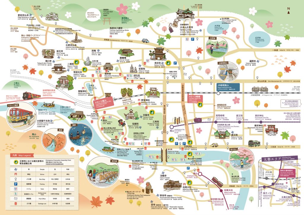 Navegación turística: Mapa turístico de Kioto con nivel de confort – Arashiyama