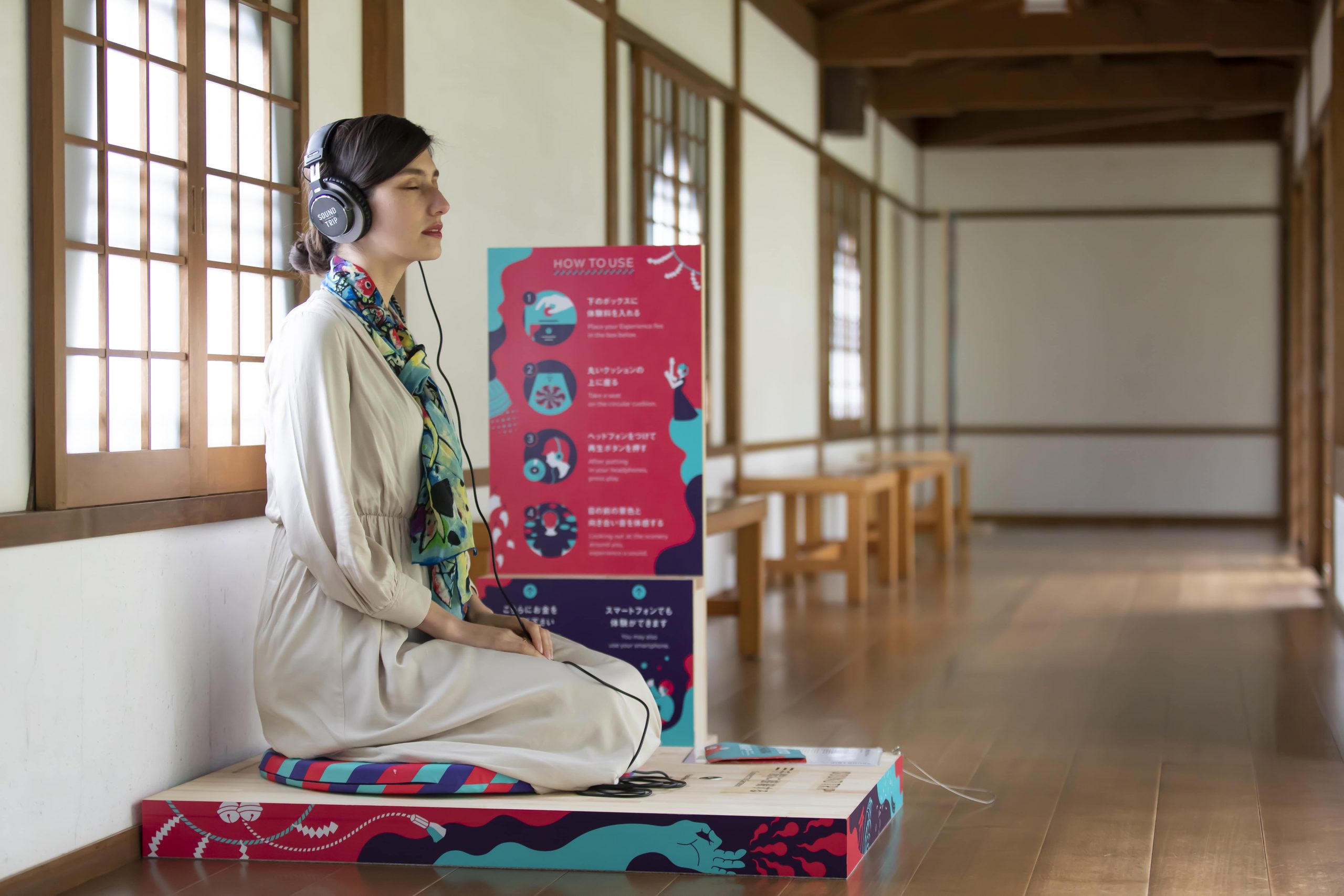 - Asseyez-vous dans la cabine SOUND TRIP spécialement conçue à cet effet dans un temple ou un sanctuaire participant.