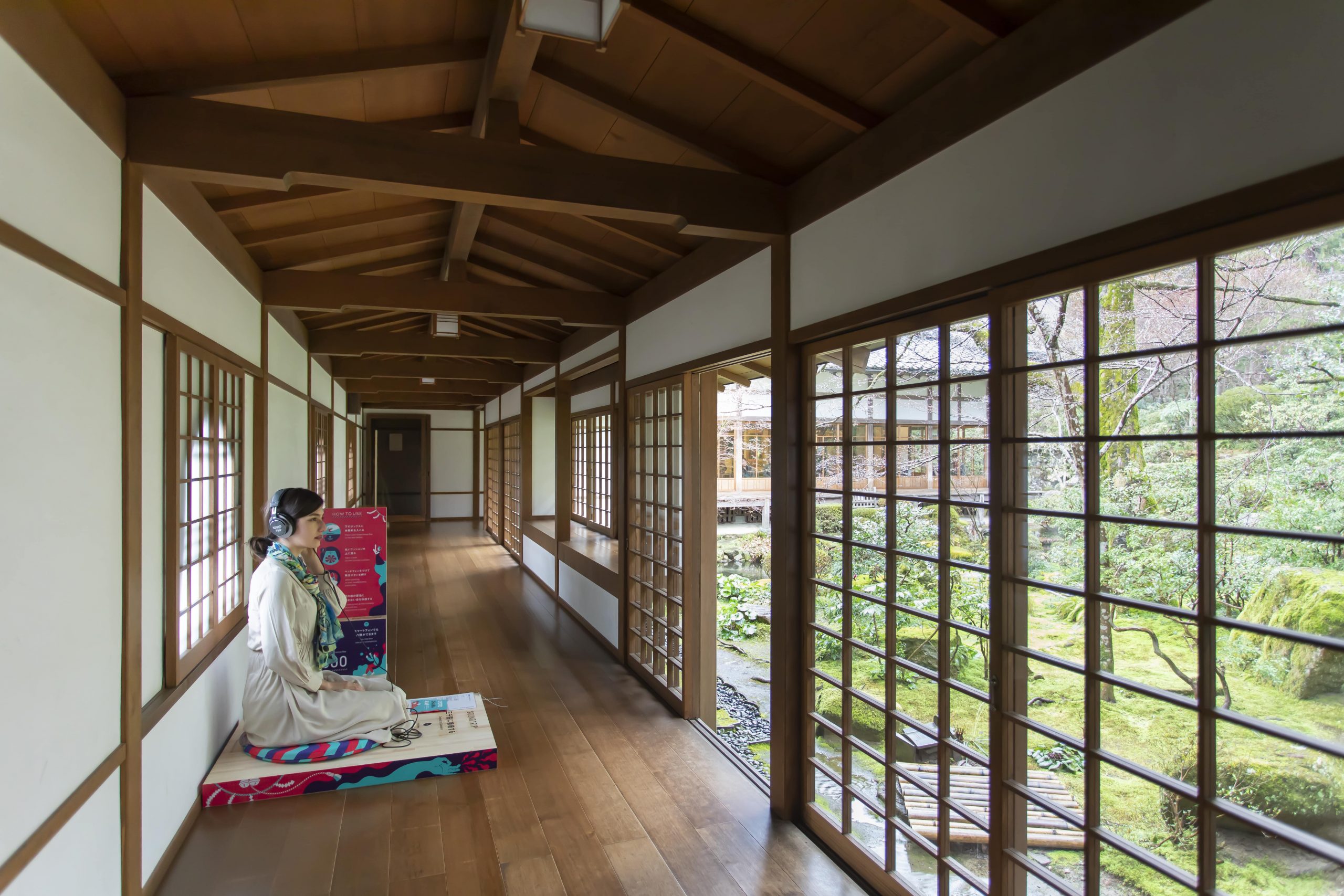 Les fenêtres à croisillons qui s'offrent à vous donnent l'impression d'une succession de dizaines de minuscules cadres. La douce lumière et la brise fraîche d'une fenêtre ouverte caressent votre peau. Derrière les fenêtres s'étend un magnifique jardin où l'eau, la verdure, le ciel et le soleil se fondent en un seul. Le paysage semble jouer sa propre harmonie naturelle.