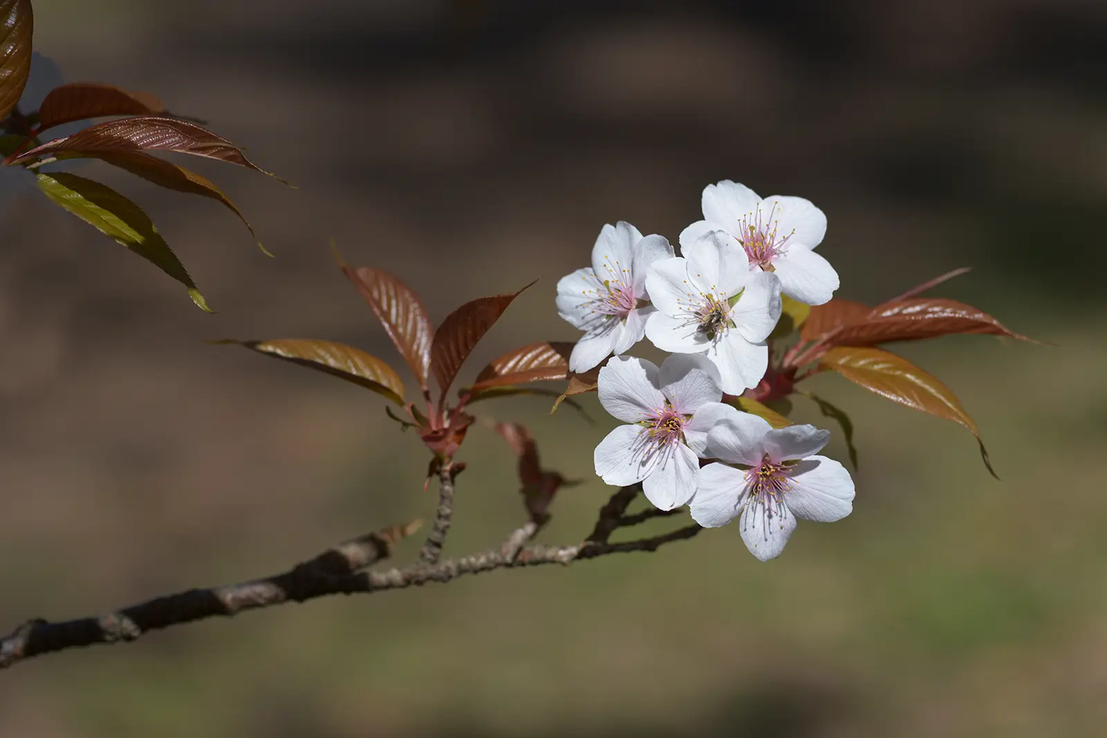 Bien avant l'apparition du somei yoshino, les cerisiers de montagne yamazakura poussaient à l'état sauvage dans les montagnes du Japon, très appréciés des poètes et des aristocrates. Leur caractéristique la plus distinctive réside dans leurs feuilles brun-rougeâtre qui apparaissent en même temps que les fleurs, conférant au yamazakura une coloration subtile qui se fond dans le paysage montagneux.