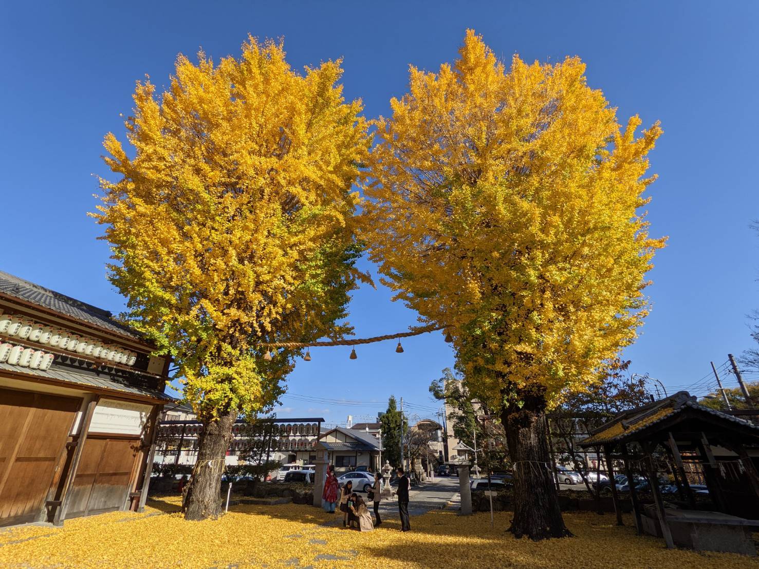 특히 후시미구 지역은 은행나무 단풍으로 유명하며, 비교적 한적한 편입니다. 미스 신사와 요도 신사의 경내는 은행나무 잎으로 뒤덮여 가을 햇살에 은은하게 빛납니다.