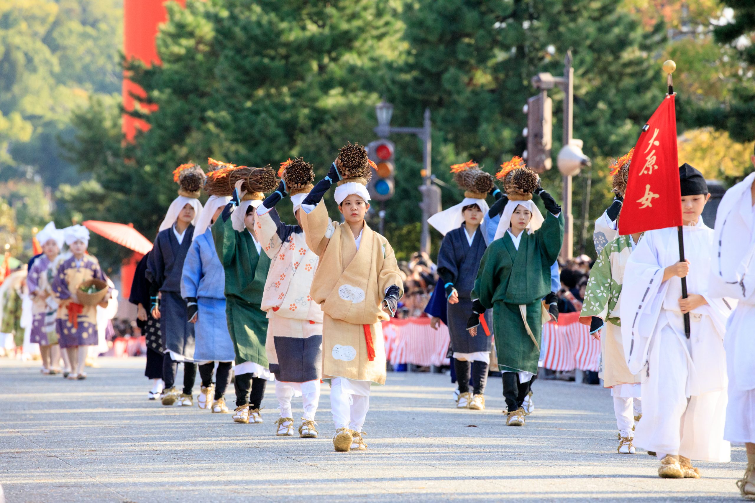 遊行隊伍跨越了從明治維新(1868年)到延曆(782年 - 806年)的8個歷史時期,共有約20個隊伍、約2000名參與者和70匹馬和牛加入,組成了長達2公里的遊行隊伍。