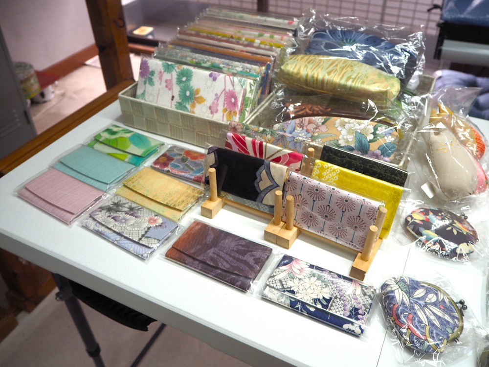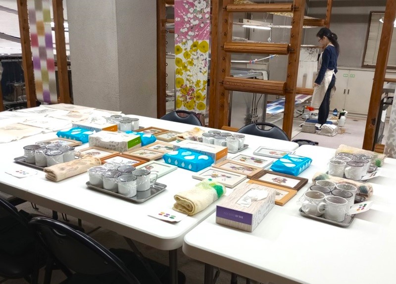 染色工坊區域也出售用京友禪織物製成的商品,這些商品僅在工坊內有售,無法透過工坊的網店購買。這些織物原本會被丟棄——例如,不符合和服製作標準的布料。它們被改造成名片夾、皮夾等小飾品。每件商品都由工匠精心手工製作,並擁有獨一無二的圖案,因此每一件都是特別的友禪織物。
