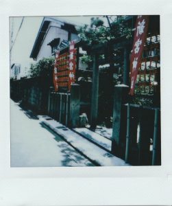 小巷兩棟房屋之間的空隙處有一座小神社。
